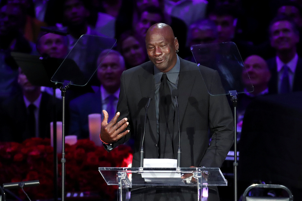 今天湖人在主场斯台普斯中心为科比-布莱恩特、Gianna与其他遇难者举办追悼会。期间,前NBA巨星、黄蜂老板迈克尔-乔丹发表演讲。
