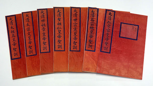 圣训,是彙集前朝皇帝生前的训谕言论,编为一书,使后代子孙恪守祖训。清代历朝圣训,满文本自太祖自穆宗共十朝,汉文本自太祖至德宗共十一朝。内容涵盖清代历朝皇帝对政治、人事、军事、经济、邦交、文化与赈恤等政策的见解与指示。