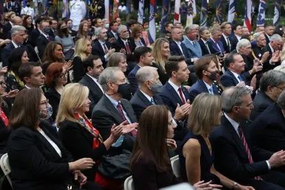 参与这场提名仪式的来宾大部分都没有戴口罩,也没有进行测试,目前已经至少9人确诊!除了特朗普夫妇,那天参加了仪式的犹他州参议员麦克.李,北卡罗莱纳州共和党参议员迪里斯(Thom Tillis),圣母大学校长,还有三名白宫记者全部确诊!