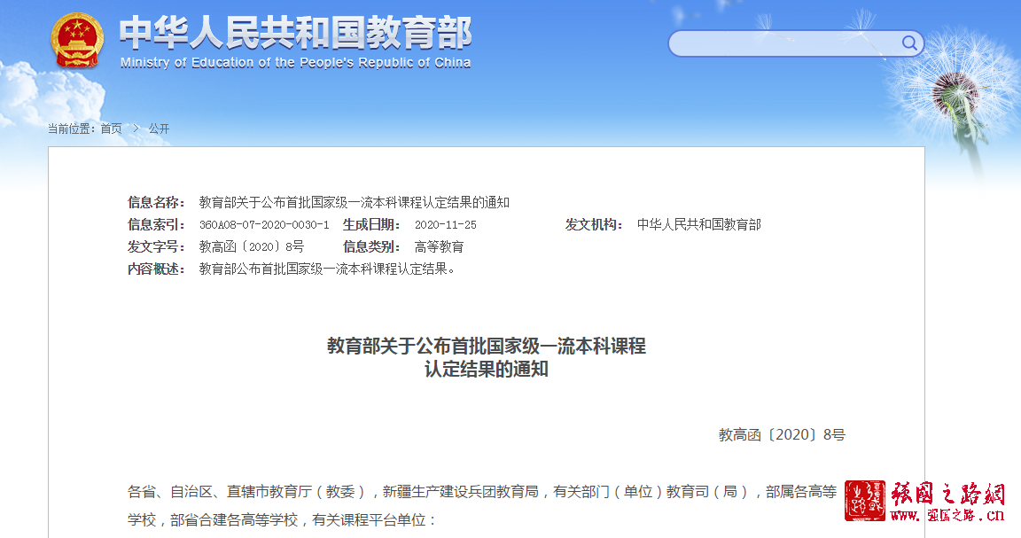 教育部关于公布首批国家级一流本科课程认定结果的通知