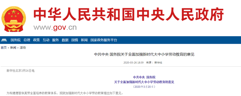 为构建德智体美劳全面培养的教育体系,现就加强新时代大中小学劳动教育提出如下意见。
