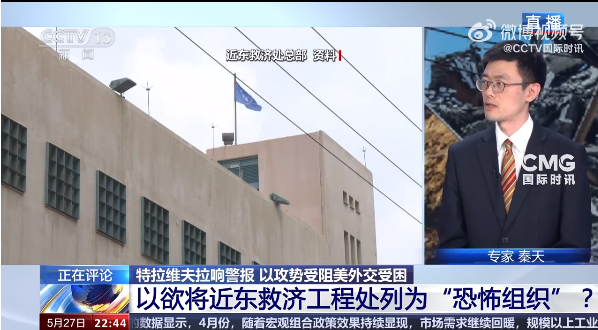 《耶路撒冷邮报》5月26日报道称,以色列议会正在推动通过一份法案,拟切断与联合国近东巴勒斯坦难民救济和工程处的联系,并将其宣布为“恐怖组织”。对此,中国现代国际关系研究院中东所副所长秦天指出,以色列对于近东救济工程处的不满由来已久,企图将联合国机构列为“恐怖组织”只能反映出以方担心自己的行为被曝光于世,同时以方对国际机构存在着根深蒂固的偏见。
