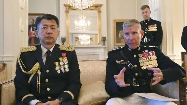 一同出席发布会的日本陆上自卫队的陆上幕僚长森下泰臣称,将加强陆自和美国海军陆战队的合作,推进印太地区的“和平稳定”。