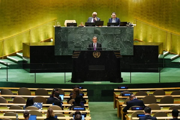 当地时间2024年9月28日,中共中央政治局委员、外交部长王毅在纽约联合国总部出席第79届联合国大会一般性辩论,就国际地区热点问题阐述了中方立场。