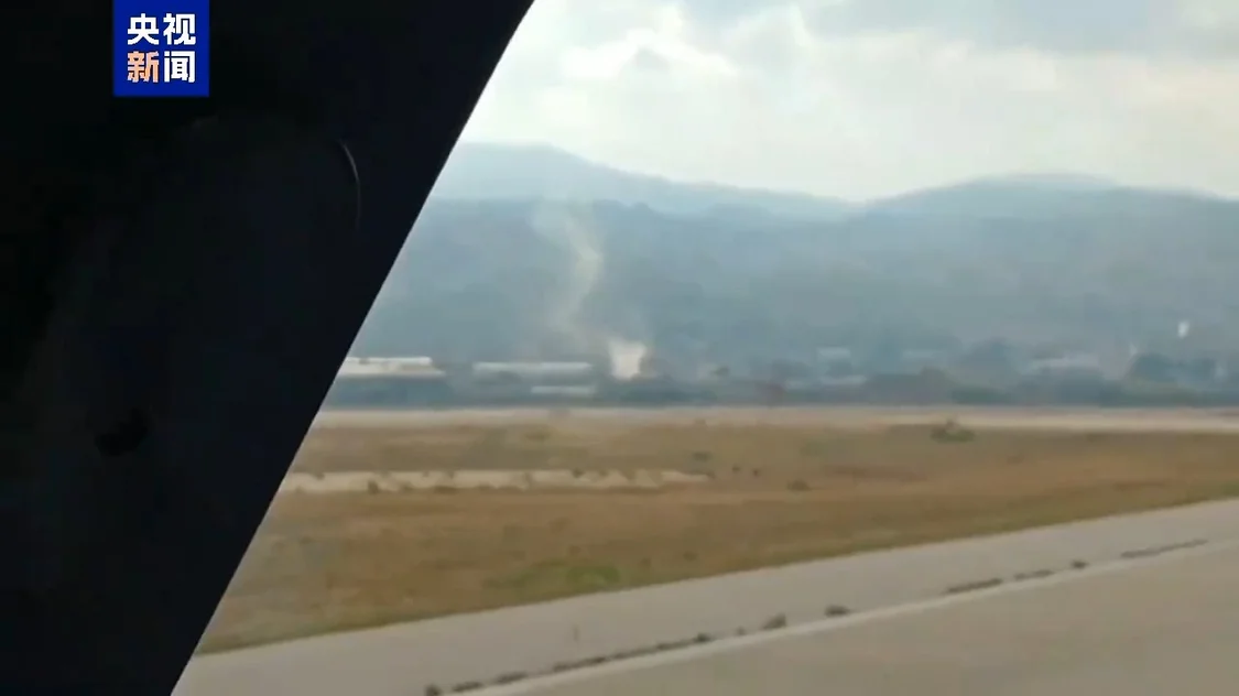 降落过程中可以看见以色列仍然在对黎巴嫩进行空袭行动,袭击地点距离飞机很近。