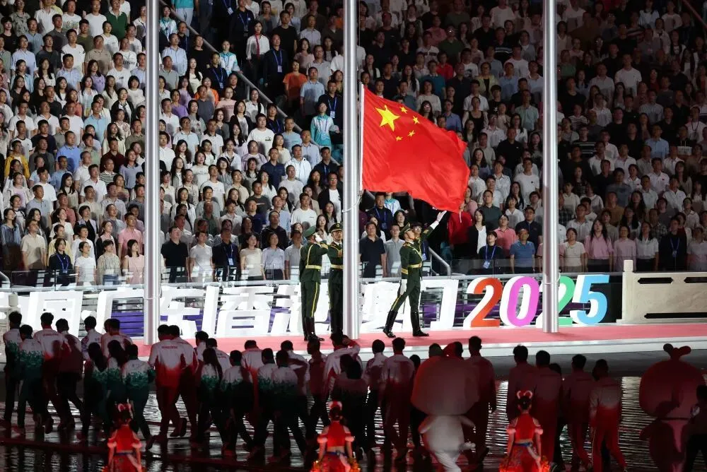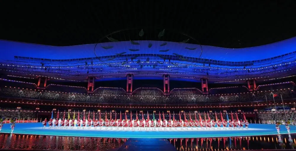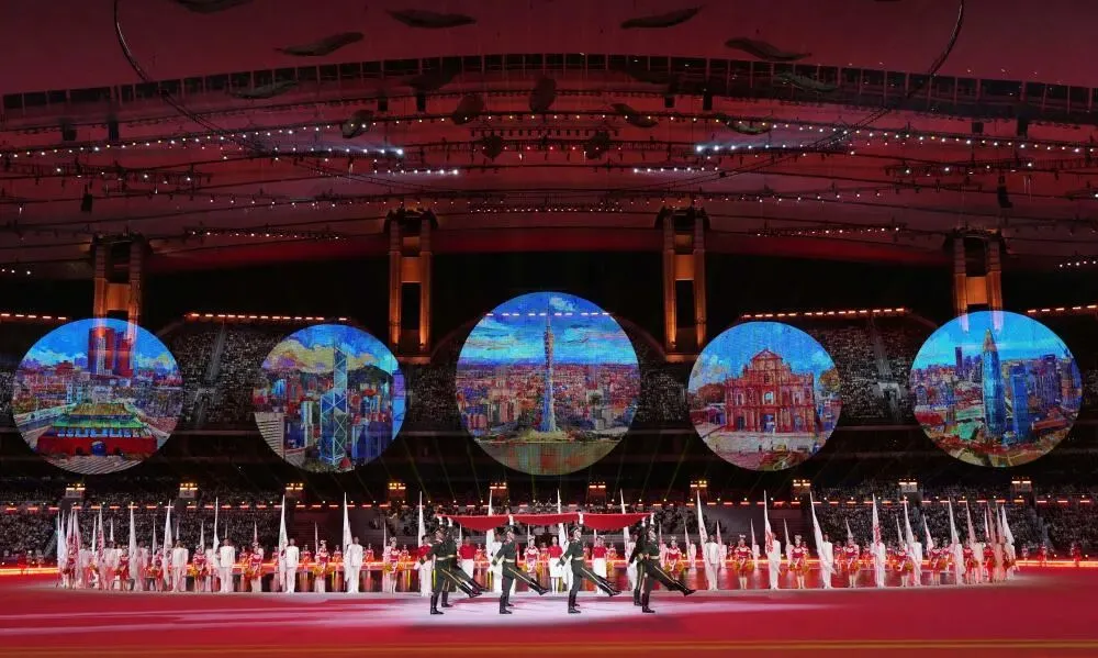 广东省体育代表团、香港特别行政区体育代表团、澳门特别行政区体育代表团在入场仪式上共同入场。新华社记者 黄伟 摄