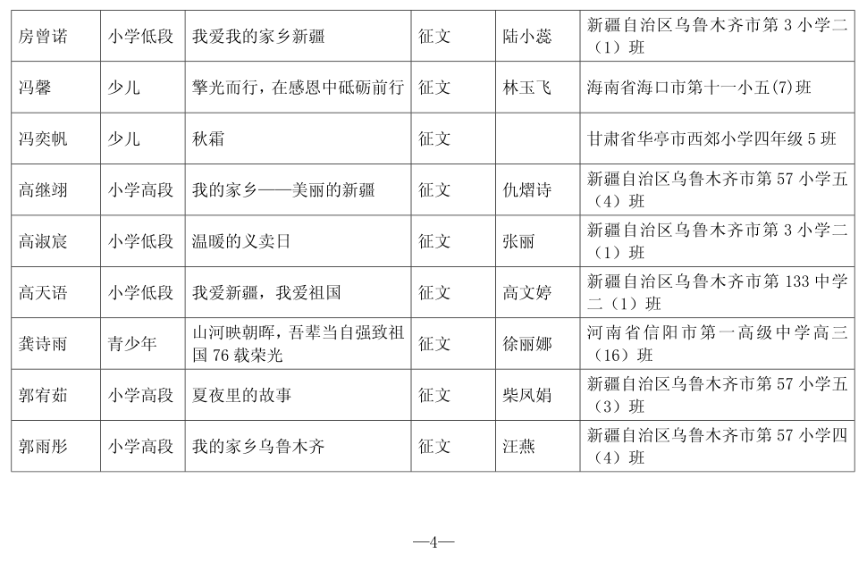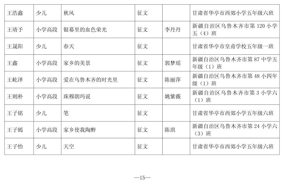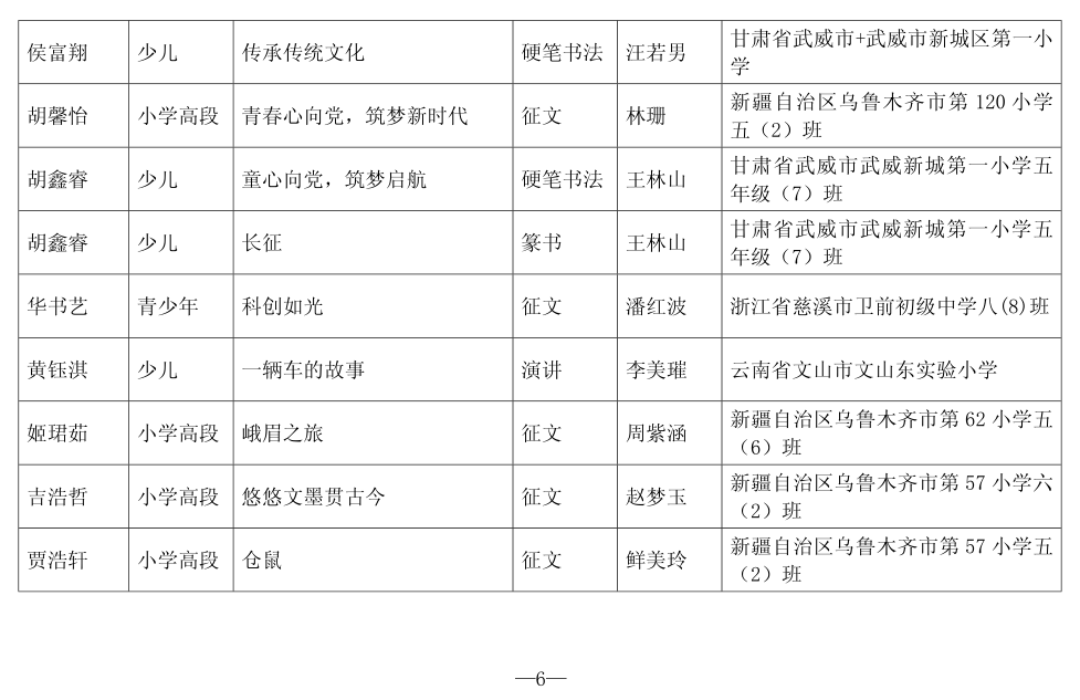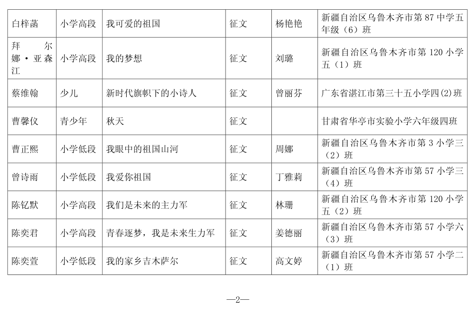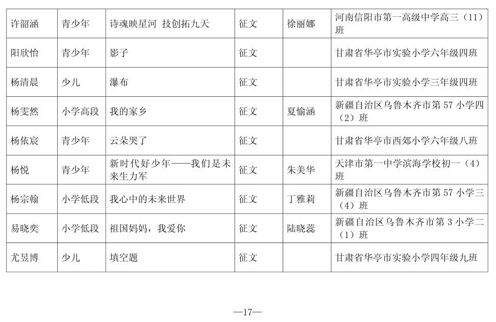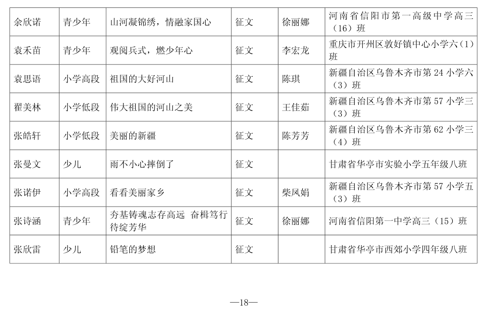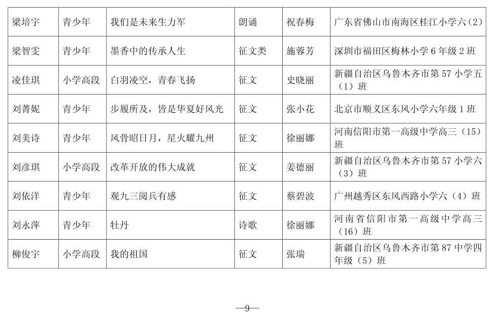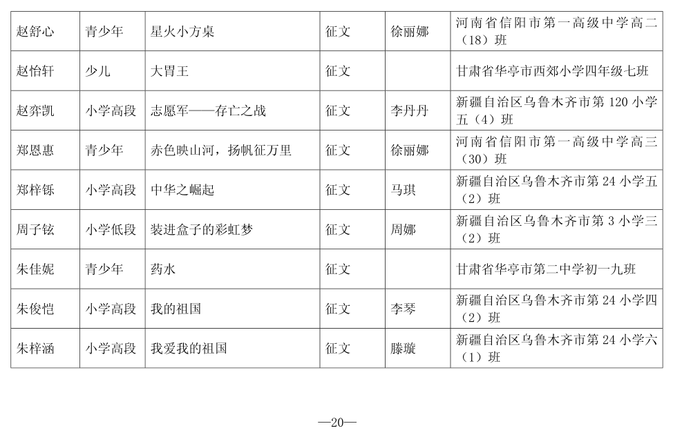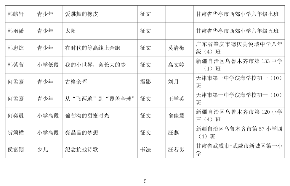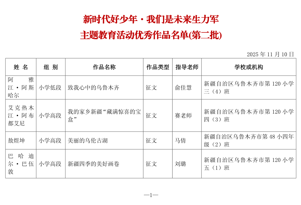 经过对投稿作品认真审核筛选,现将“新时代好少年·我们是未来生力军”主题教育活动优秀作品名单(第二批)公布如下:
