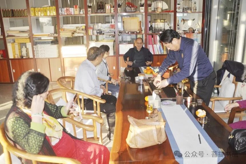 菩提书画院秘书长、儋州书法家协会副秘书长张昊武先生,菩提书画院画家郭瑞琴女士,菩提书画院办公室主任郭志山等人一同接待到访的客人。调研活动在祥和、热烈的气氛中结束。