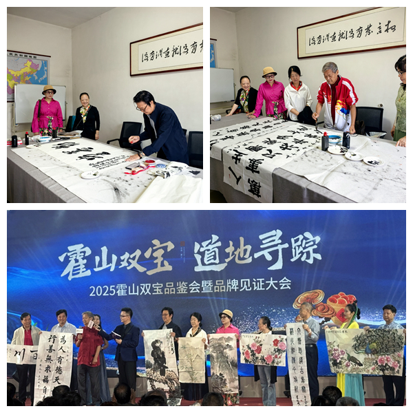 下午的霍山双宝品鉴会暨品牌见证大会,更将此行推向高潮。一方是晶莹的石斛汁、醇厚的灵芝茶,杯盏间漾着“霍山双宝”的甘润;另一方是专家学者的娓娓道来,从《神农本草经》中石斛“主伤中,除痹,下气,补五脏虚劳羸瘦”的记载,到灵芝在传统养生文化中的“仙草”美誉,再到现代研究揭示的活性成分与保健功效,让舌尖的品鉴多了层文化与科学的厚度。当书画家们再次登台,将上午创作的书画作品郑重捐赠给勤善堂,掌声与茶香交织,为这场盛会添了几分雅韵。