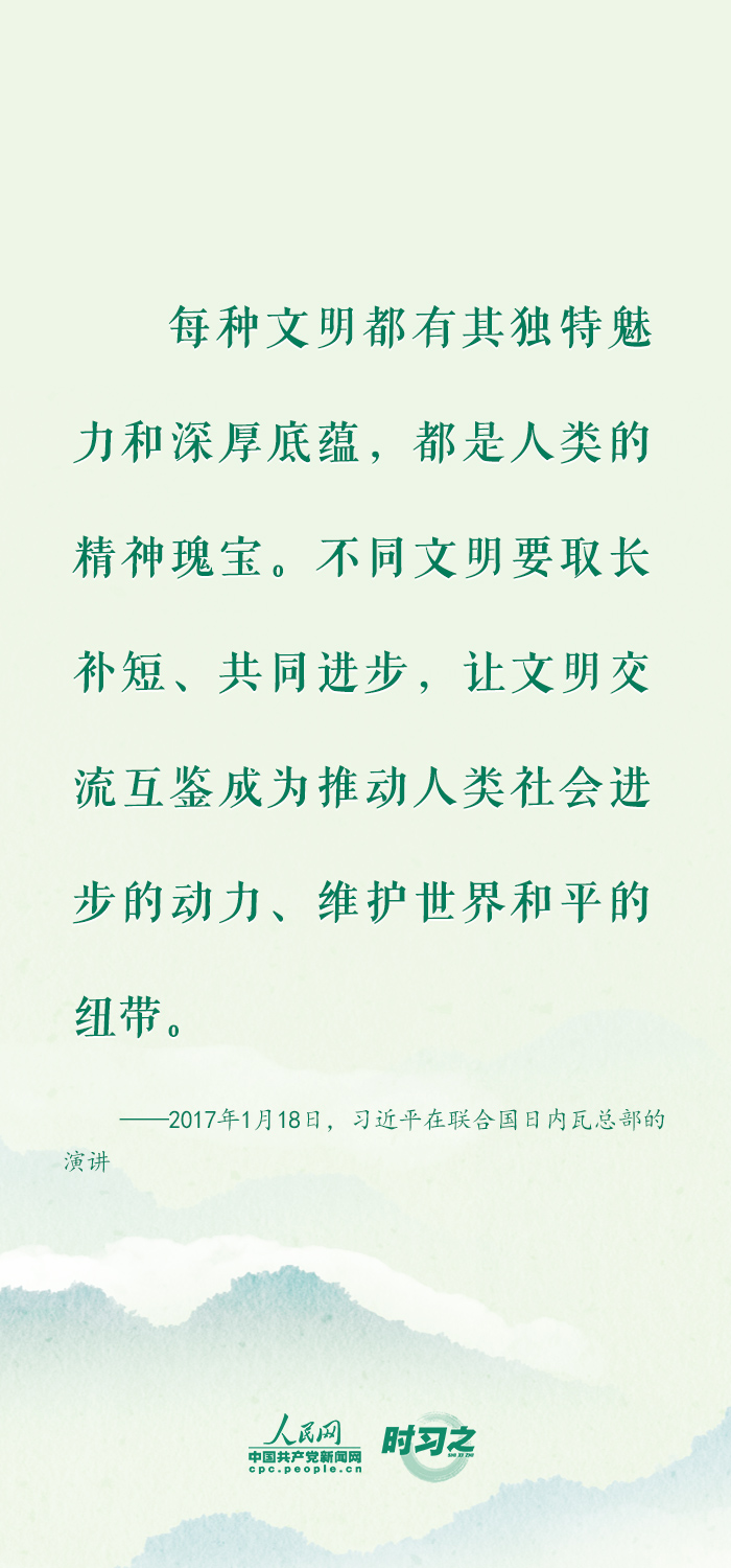 文化因交流而多彩,文明因互鉴而丰富。习近平在不同场合多次发表重要讲话,推动不同国家、不同民族、不同文化间加强交流互鉴,共同绘就美美与共的人类文明画卷。