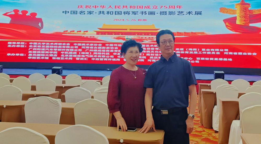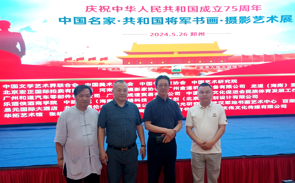 强国之路网 5月30日郑州电讯(通讯员 周晓辉 钟蕊)5月26日,“庆祝中华人民共和国成立75周年 一一中国名家•共和国将军书画摄影艺术展” 在郑州隆重开幕,中国水墨艺术研究院院长、中国孔商中心副理事长、“强国之路”主题系列活动组委会常务副主席,军旅诗书画艺术家方军教授受邀出席。